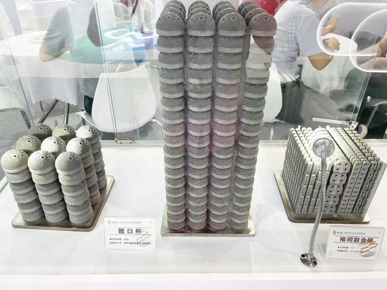 此次TCT展會(huì),西安賽隆重點(diǎn)介紹了自主知識(shí)產(chǎn)權(quán)、行業(yè)獨(dú)有的搭載間熱式電子槍的系列化電子束3D打印設(shè)備及超高轉(zhuǎn)速的桌面級(jí)和工業(yè)級(jí)等離子旋轉(zhuǎn)電極霧化制粉設(shè)備,并面向不同的應(yīng)用領(lǐng)域,展示了電子束3D打印最新案例。在醫(yī)療領(lǐng)域,西安賽隆展示了不同成形尺寸的滿板鈦合金椎間融合器、滿板鈦合金髖臼杯以及高精度多孔鉭髖關(guān)節(jié)、膝關(guān)節(jié)墊塊,目前公司已成功助力邁瑞骨科3D打印髖臼杯系統(tǒng)獲三類醫(yī)療器械注冊(cè)證。在汽車領(lǐng)域,西安賽隆展示了電子束3D打印半軸類和輪轂類純銅感應(yīng)線圈,相關(guān)產(chǎn)品已在國(guó)內(nèi)20余家汽車零部件龍頭企業(yè)的生產(chǎn)線進(jìn)行驗(yàn)證及應(yīng)用,使用效果優(yōu)異。此外,面向航空領(lǐng)域和科研領(lǐng)域的需求,西安賽隆還展示了300mm鈦鋁葉片、鈦合金雙點(diǎn)陣結(jié)構(gòu)等典型案例。